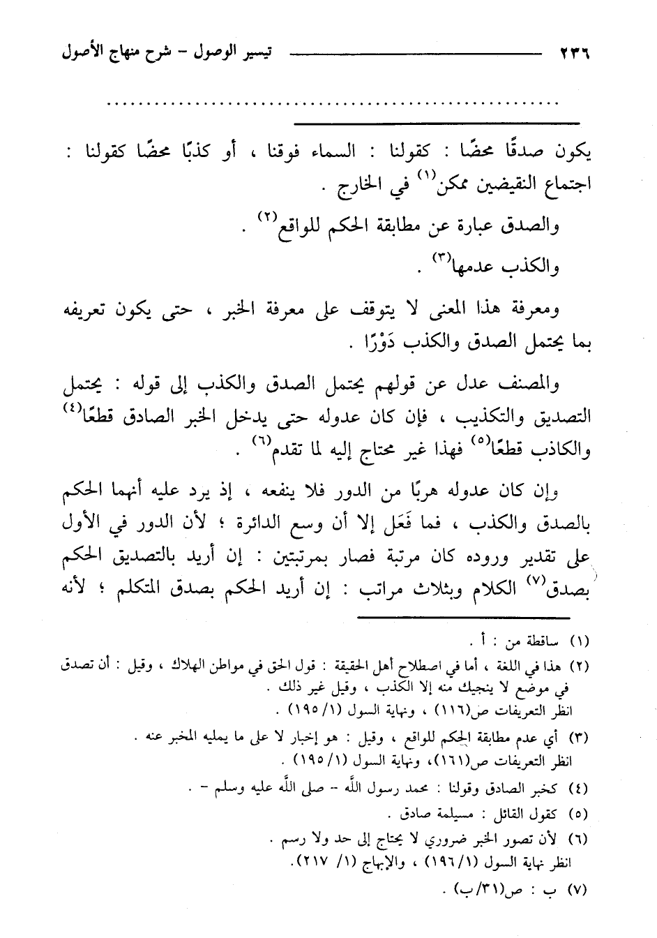 وإن كان عدوله هربًا من الدور فلا ينفعه، إذا يرد عليه أنهما الحكم بالصدق والكذب، فما فعل إلا أن وسع الدائرة؛ لأن الدور في الأول على تقدير وروده كان مرتبة فصار بمرتبتين: إن أريد بالتصديق الحكم بصدق الكلام وبثلاث مراتب: إن أريد الحكم بصدق المتكلم؛ لأنه
