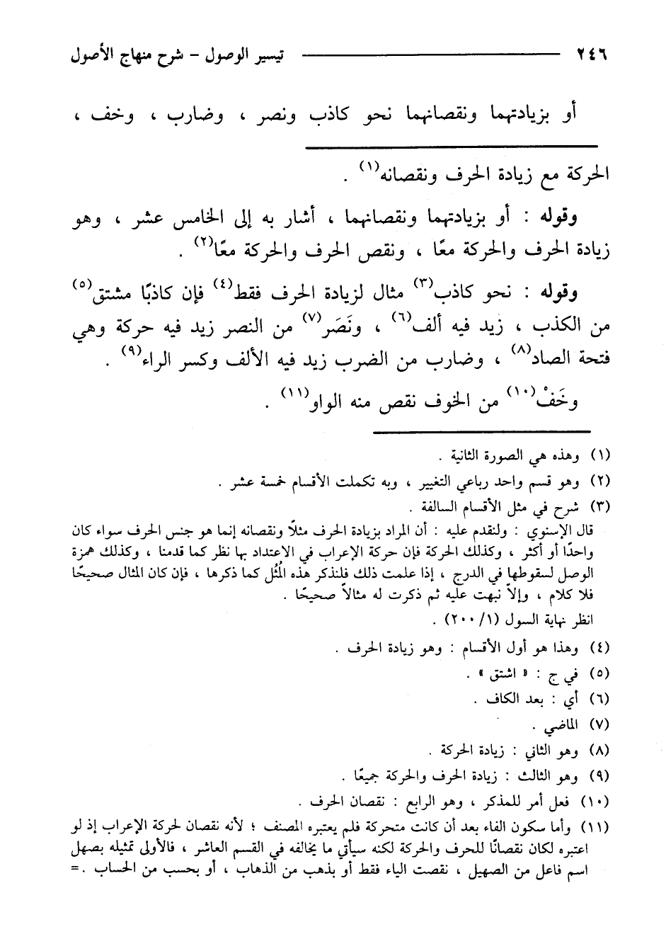 وقوله: نحو كاذب مثال لزيادة الحرف فقط فإن كاذبًا مشتق من الكذب، زيد فيه ألف، ونصر من النصر زيد فيه حركة وهي فتحة الصاد، وضارب من الضرب زيد فيه الألف وكسر الراء.