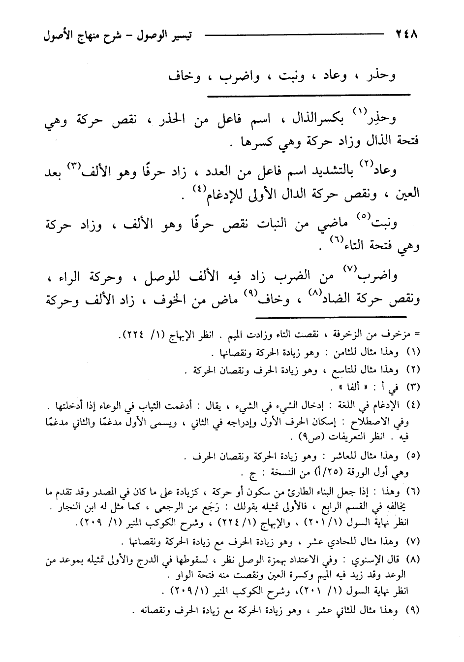 واضرب من الضرب زاد فيها الألف للوصل، وحركة الراء، ونقص حركة الضاد، وخاف ماض من الخوف، زاد الألف وحركة