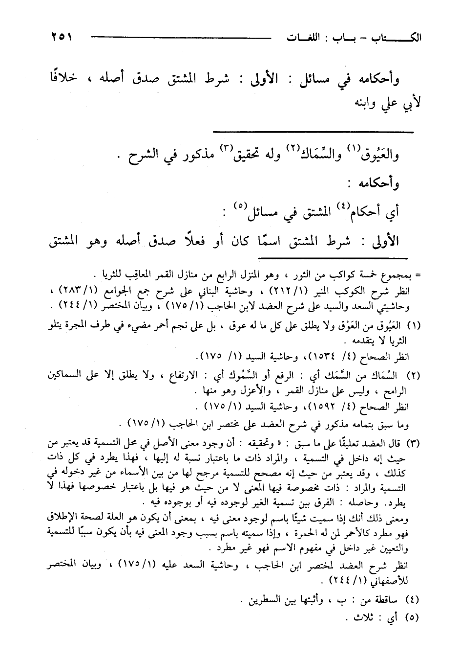 أي أحكام المشتق في مسائل:
