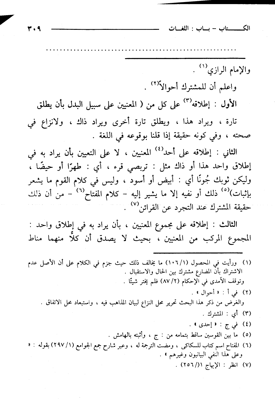 واعلم أن للمشترك أحوالاً.