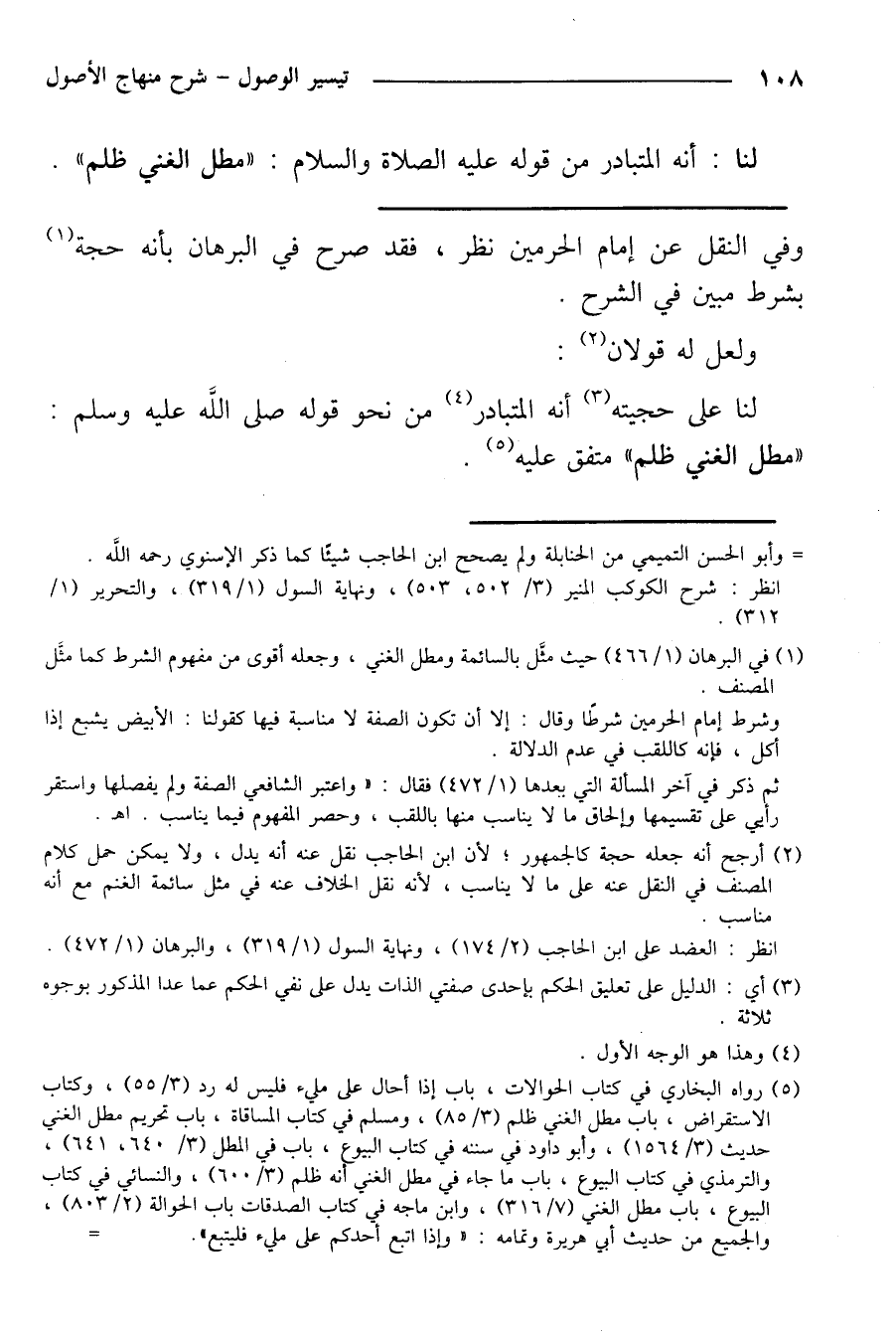 لنا على حجيته أنه المتبادر من نحو قوله صلى الله عليه وسلم: "مطل الغني ظلم" متفق عليه.