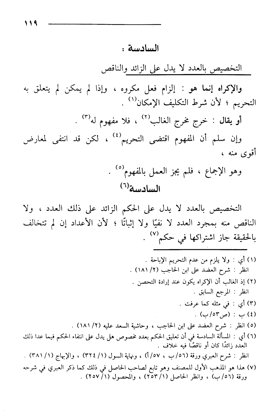 التخصيص بالعدد لا يدل على الحكم الزائد على ذلك العدد، ولا الناقص منه بمجرد العدد لا نفيًا ولا إثباتًا؛ لأن الأعداد إن لم تتخالف بالحقيقة جاز اشتراكها في حكم.