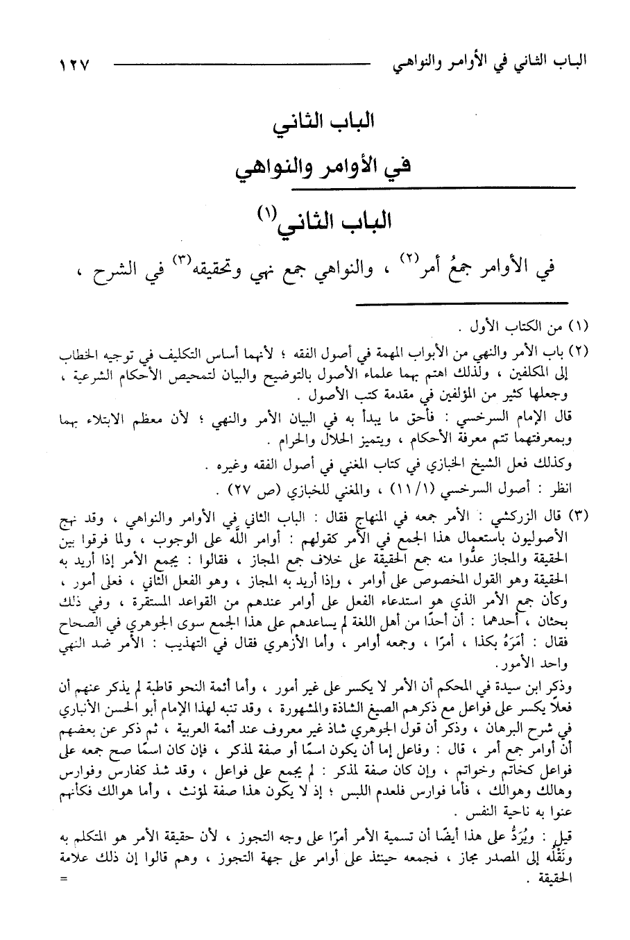 الباب الثاني: في الأوامر جمع أمر، والنواهي جمع نهي وتحقيقه في الشرح،