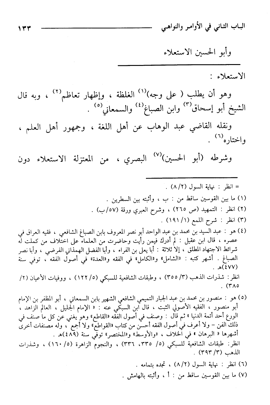 وشرطه (أبو الحسين) البصري، من المعتزلة الاستعلاء دون