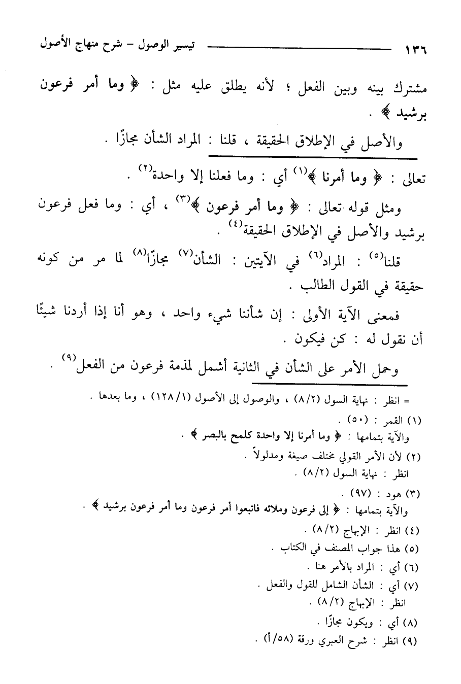 ومثل قوله تعالى: } وما أمر فرعون {، أي: وما فعل فرعون برشيد والأصل في الإطلاق الحقيقة.