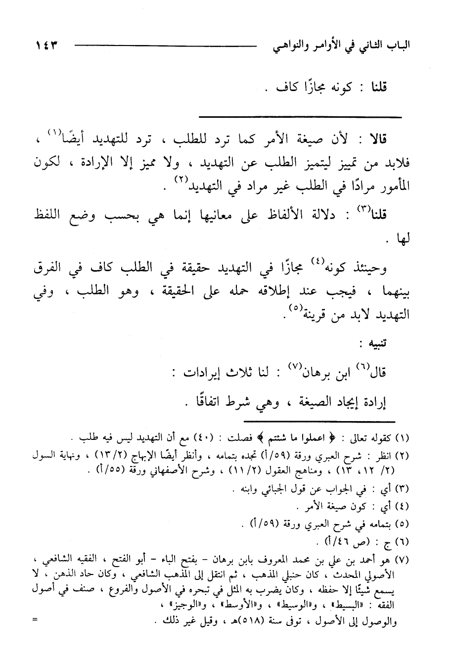 قالا: لأن صيغة الأمر كما ترد للطلب، ترد للتهديد أيضًا، فلا بد من تمييز ليتميز الطلب عن التهديد، ولا مميز إلا الإرادة، لكون المأمور مرادًا في الطلب غير مراد في التهديد.