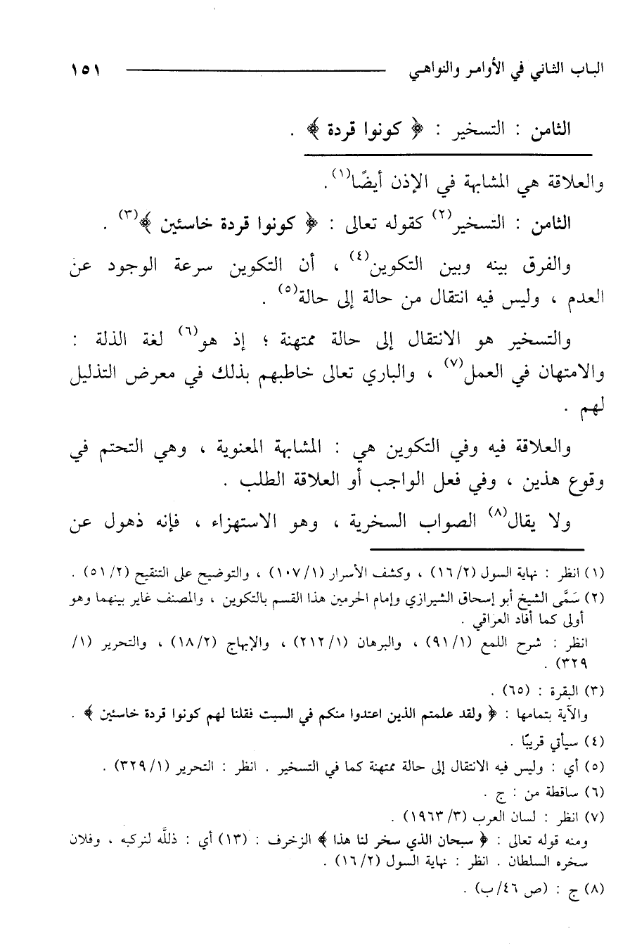 الثامن: التسخير كقوله تعالى: } كونوا قردة خاسئين {.