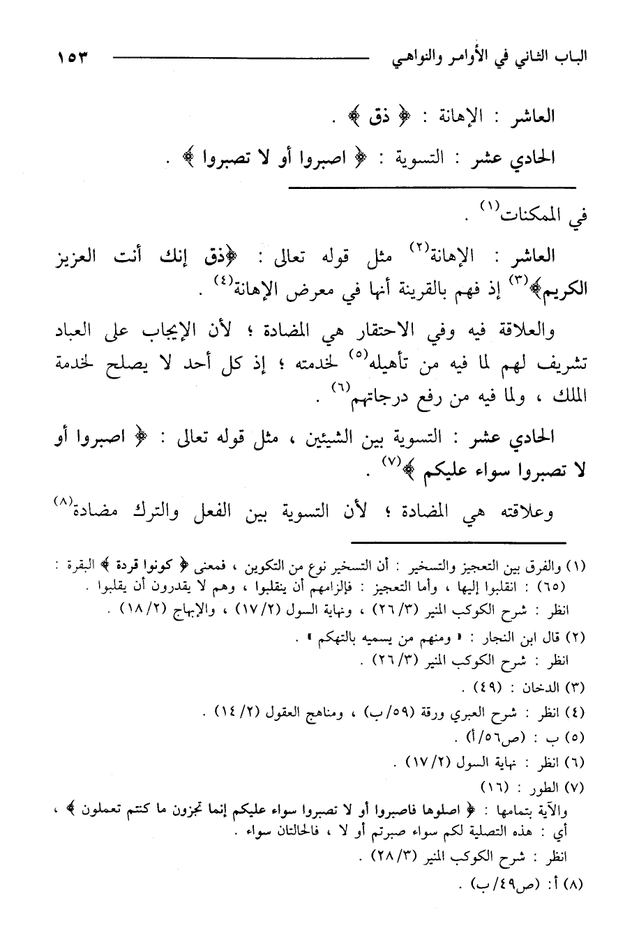 العاشر: الإهانة مثل قوله تعالى: } ذق إنك أنت العزيز الكريم {إذ فهم بالقرينة أنها في معرض الإهانة.