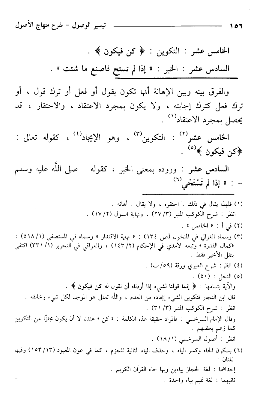 الخامس عشر: التكوين، وهو الإيجاد، كقوله تعالى: } كن فيكون {.