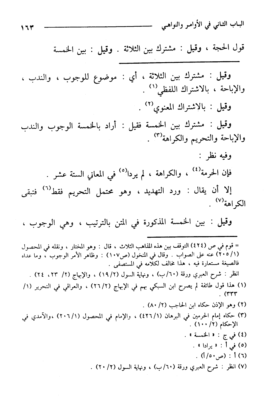 وقيل: مشترك بين الخمسة فقيل: أراد بالخمسة الوجوب والندب والإباحة والتحريم والكراهة.