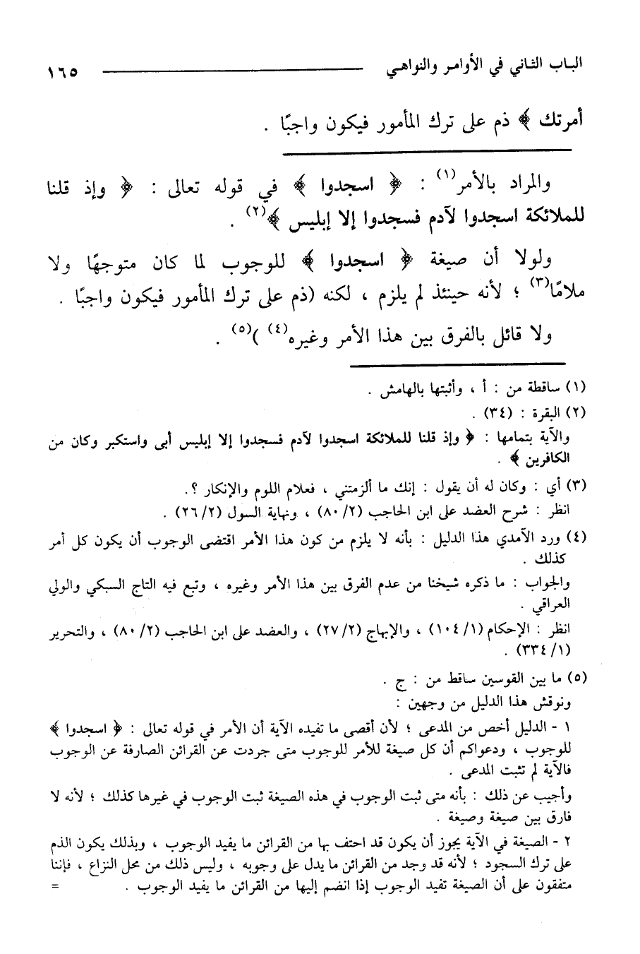 ولولا أن صيغة} سجدوا {للوجوب لما كان متوجهًا ولا ملامًا؛ لأنه حينئذ لم يلزم، لكنه (ذم على ترك المأمور فيكون واجبًا.
