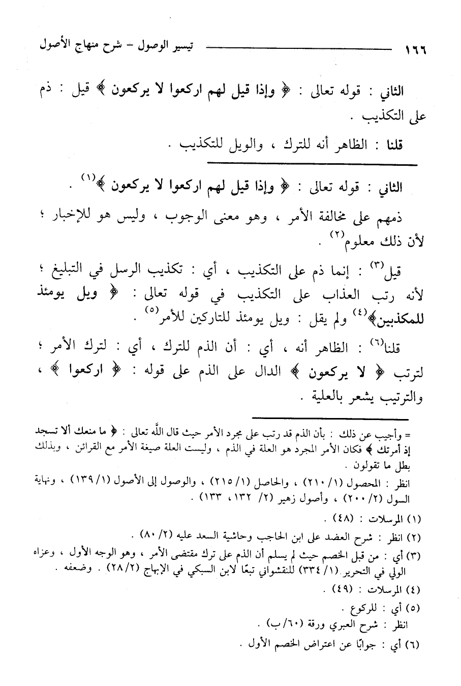 قلنا: الظاهر أنه، أي: أن الذم للترك، أي: لترك الأمر؛ لترتب} لا يركعون {الدال على الذم على قوله: } اركعوا {، والترتيب يشعر بالعلية.