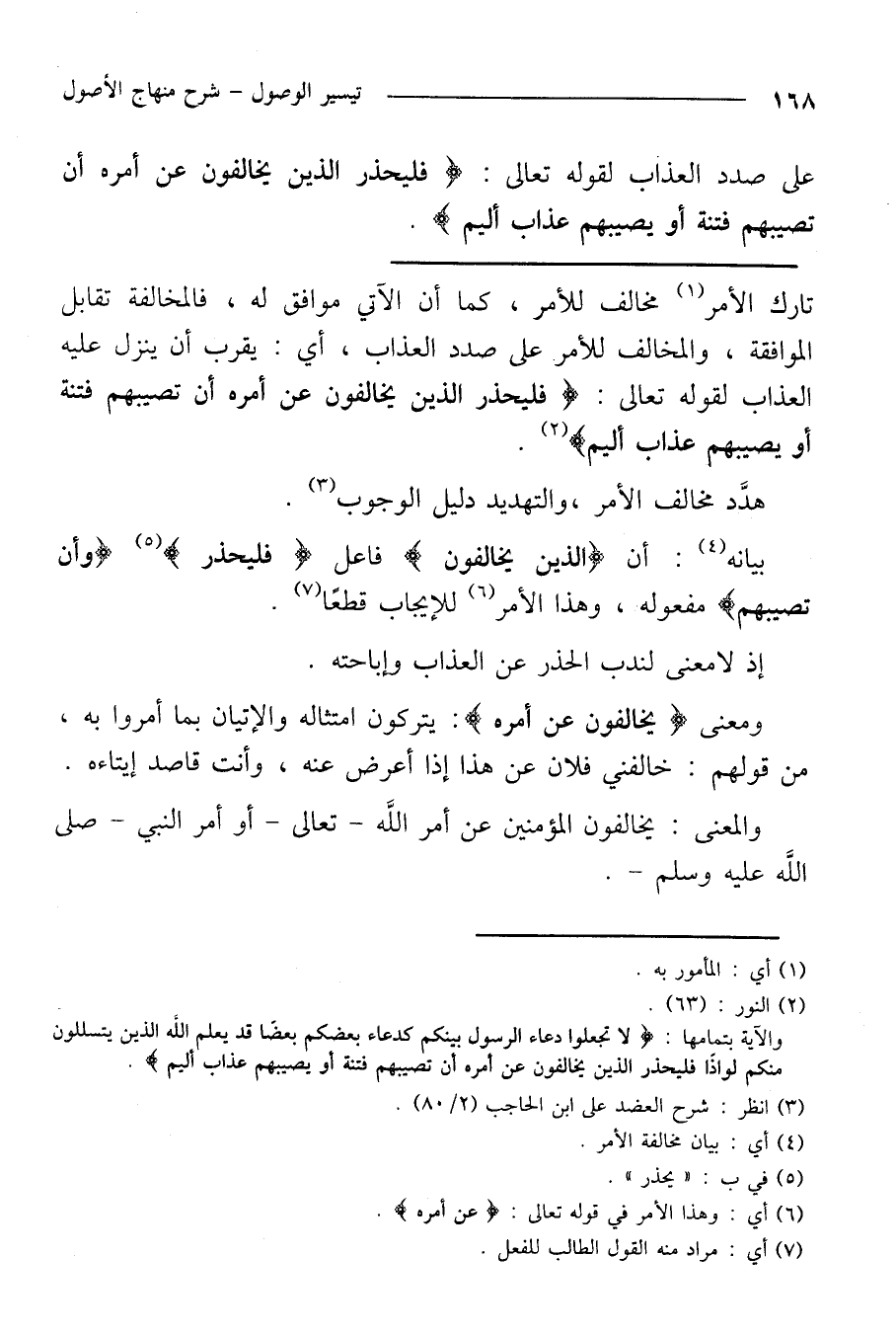 بيانه: أن} الذين يخالفون {فاعل} فليحذر {} وأن تصيبهم {مفعوله، وهذا الأمر للإيجاب قطعًا.