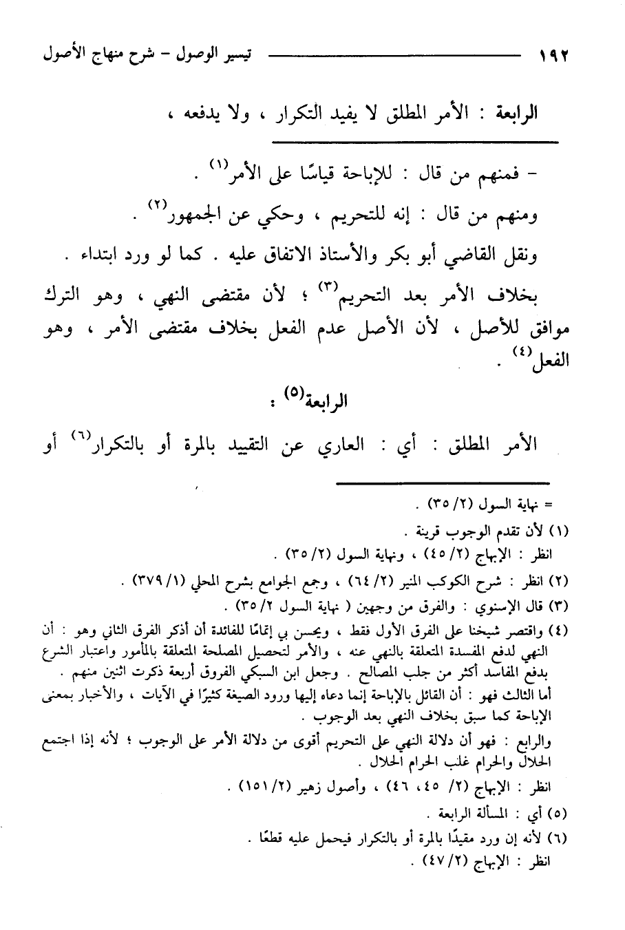 الأمر المطلق: أي: العاري عن التقييد بالمرة أو بالتكرار أو