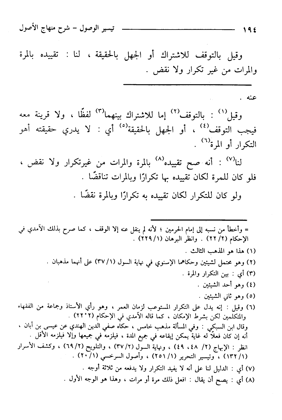 وقيل: بالتوقف إما للاشتراك بينهما لفظًا، ولا قرينة معه فيجب التوقف، أو الجهل بالحقيقة أي: لا يدري حقيقته أهو التكرار أو المرة.