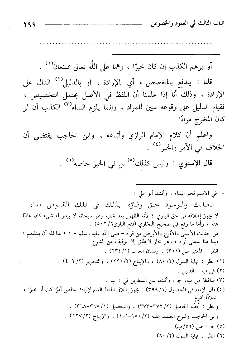 واعلم أن كلام الإمام الرازي وأتباعه، وابن الحاجب يقتضي أن الخلاف في الأمر والخبر.