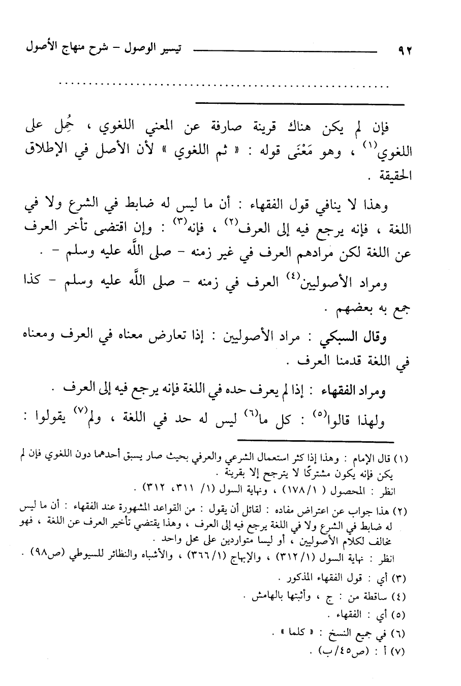 ومراد الأصوليين العرف في زمنه - صلى الله عليه وسلم - كذا جمع به بعضهم.