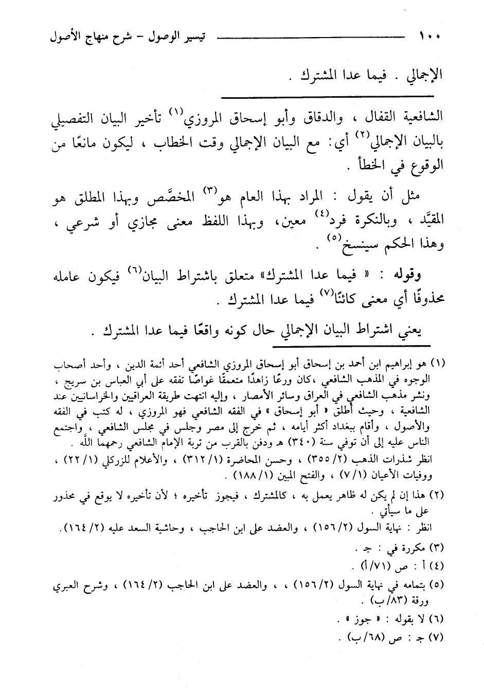 وقوله: «فيما عدا المشترك» متعلق باشتراط البيان فيكون عامله محذوفًا أي معنى كائنًا فيما عدا المشترك.