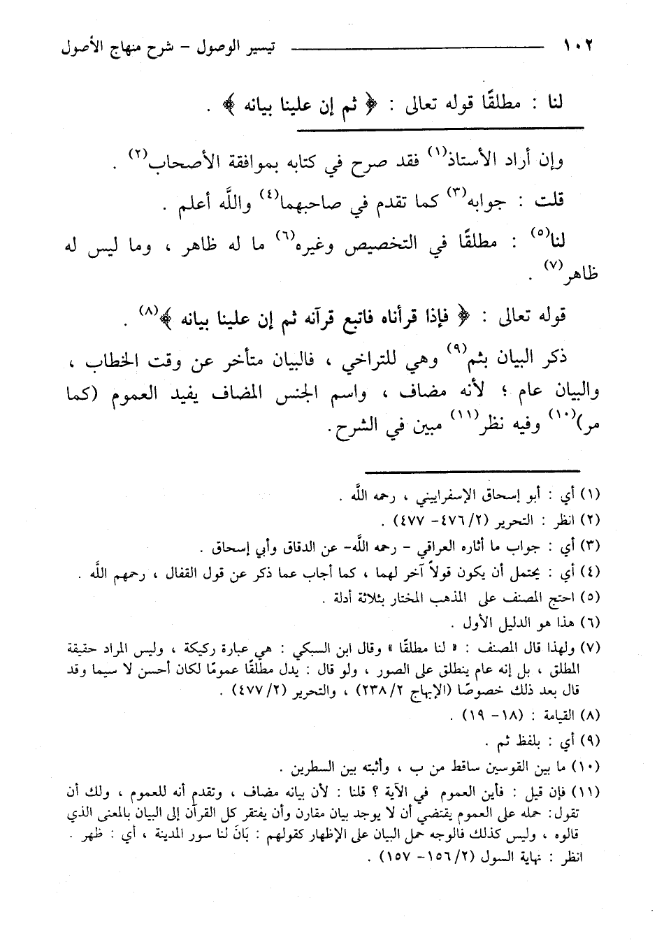ذكر البيان بثم وهي للتراخي، فالبيان متأخر عن وقت الخطاب، والبيان عام؛ لأنه مضاف، واسم الجنس المضاف يفيد العموم (كما مر) وفيه نظر مبين في الشرح.