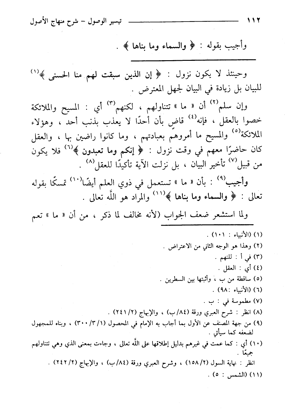 وإن سلم أن «ما» تتناولهم، لكنهم أي: المسيح والملائكة خصوا بالعقل، فإنه قاضٍ بأن أحدًا لا يعذب بذنب أحد، وهؤلاء الملائكة والمسيح ما أمروهم بعبادتهم، وما كانوا راضين بها، والعقل كان حاضرًا معهم في وقت نزول: {إنكم وما تعبدون} فلا يكون من قبيل تأخير البيان، بل نزلت الآية تأكيدًا للعقل.