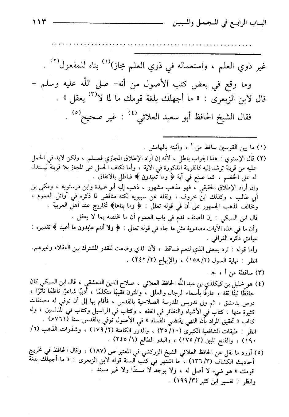 وما وقع في بعض كتب الأصول من أنه -صلى الله عليه وسلم -قال لابن الزبعرى: «ما أجهلك بلغة قومك ما لما لا يعقل».
