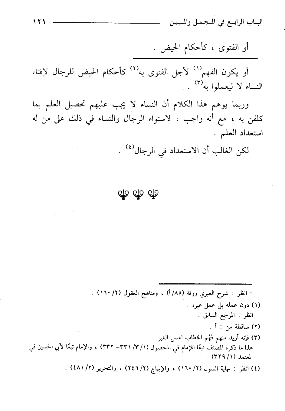 وربما يوهم هذا الكلام أن النساء لا يجب عليهم تحصيل العلم ما كلفن به، مع أنه واجب، لاستواء الرجال والنساء في ذلك على من له استعداد العلم.