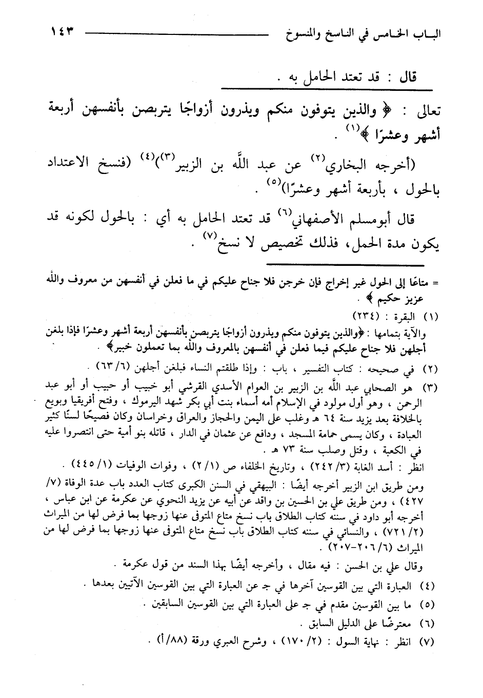 (أخرجه البخاري عن عبد الله بن الزبير) (فنسخ الاعتداد بالحول، بأربعة أشهر وعشرًا).