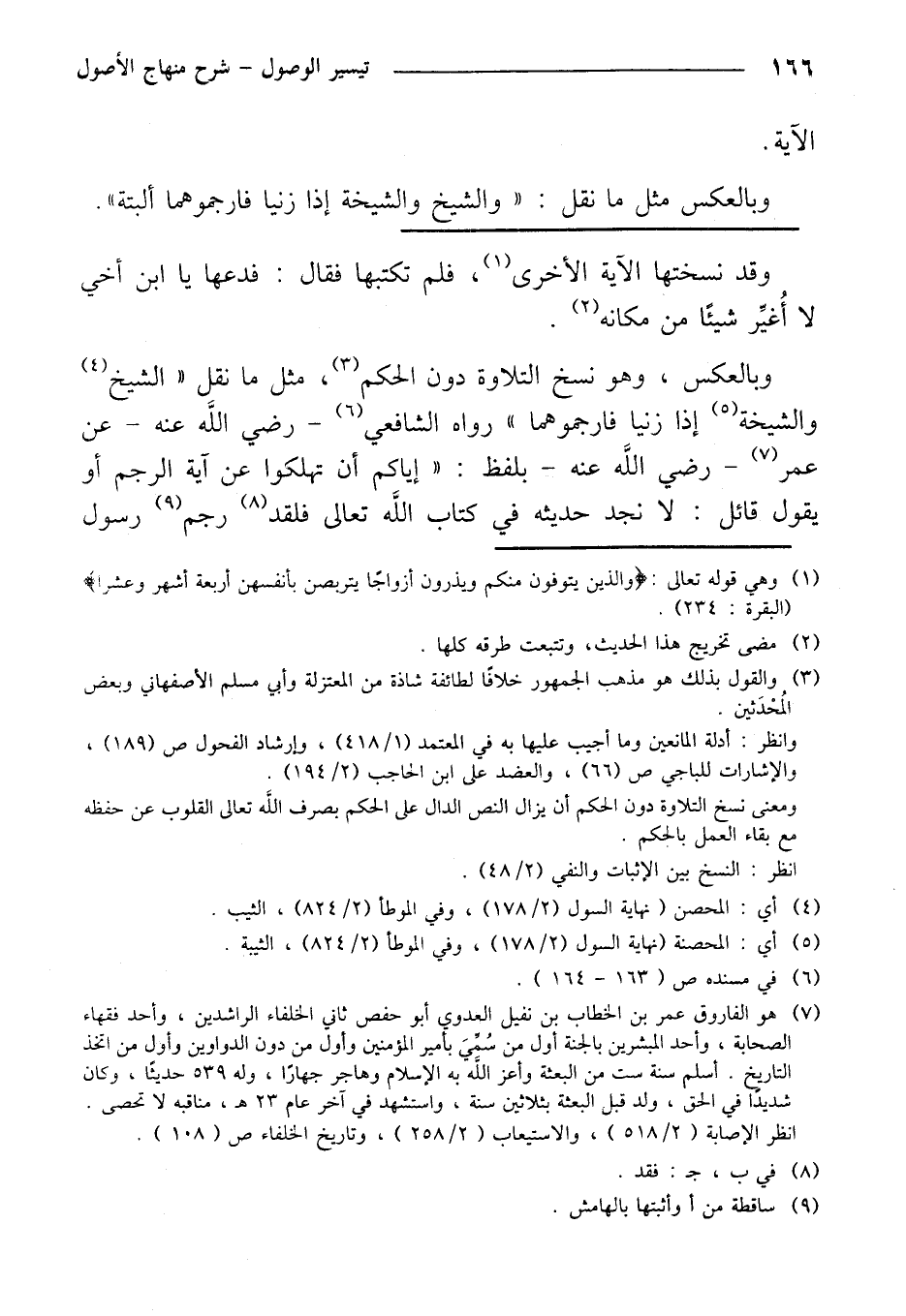 وبالعكس، وهو نسخ التلاوة دون الحكم، مثل ما نقل ((الشيخ والشيخة إذا زنيا فارجموهما)) رواه الشافعي - رضي الله عنه - عن غمر - رضي الله عنه - بلفظ: ((إياكم أن تهلكوا عن آية الرجم أو يقول قائل: لا نجد حديثه في كتاب الله تعالى فلقد رجم رسول