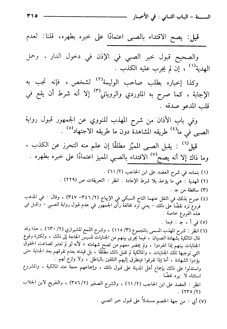 وفي باب الأذان من شرح المهذب للنووي عن الجمهور قبول رواية الصبي في ما طريقه المشاهدة دون ما طريقه الاجتهاد.