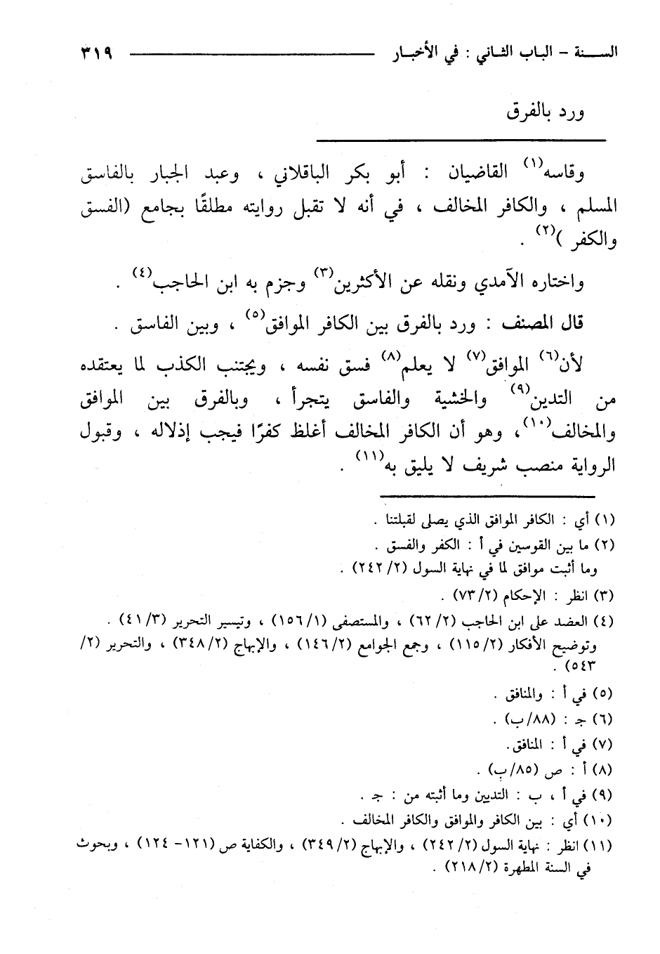 قال المصنف: ورد بالفرق بين الكافر الموافق، وبين الفاسق.