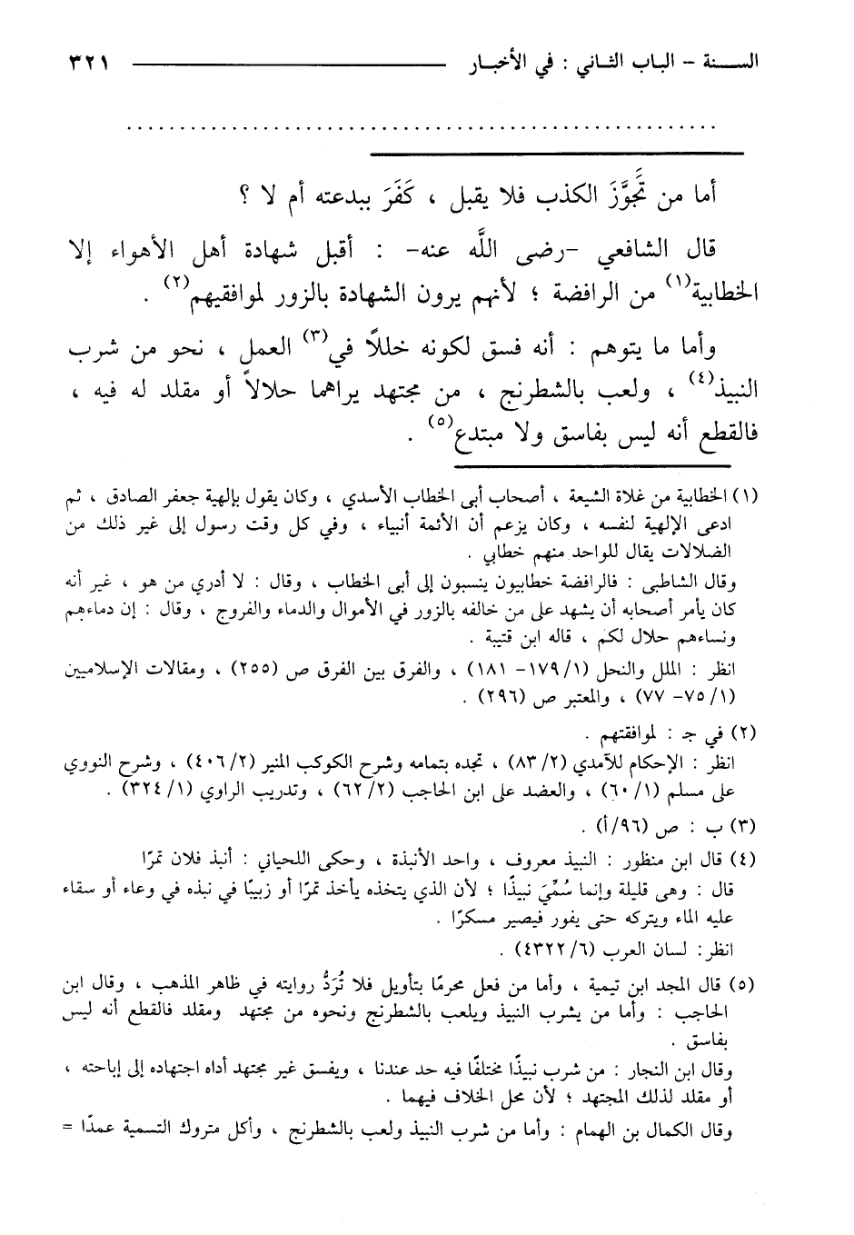 قال الشافعي- رضي الله عنه-: أقبل شهادة أهل الأهواء إلا الخطابية من الرافضة؛ لأنهم يرون الشهادة بالزور لموافقيهم.