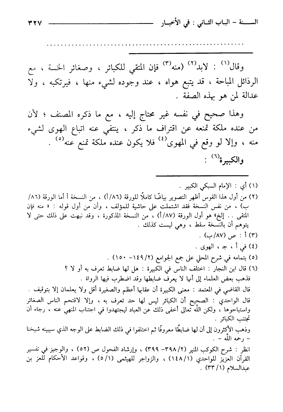 وقال: لا بد (منه فإن المتقي للكبائر، وصغائر الخسة، مع الرذائل المباحة، قد يتبع هواه، عند وجوده لشيء منها، فيرتكبه، ولا عدالة لمن هو بهذه الصفة.