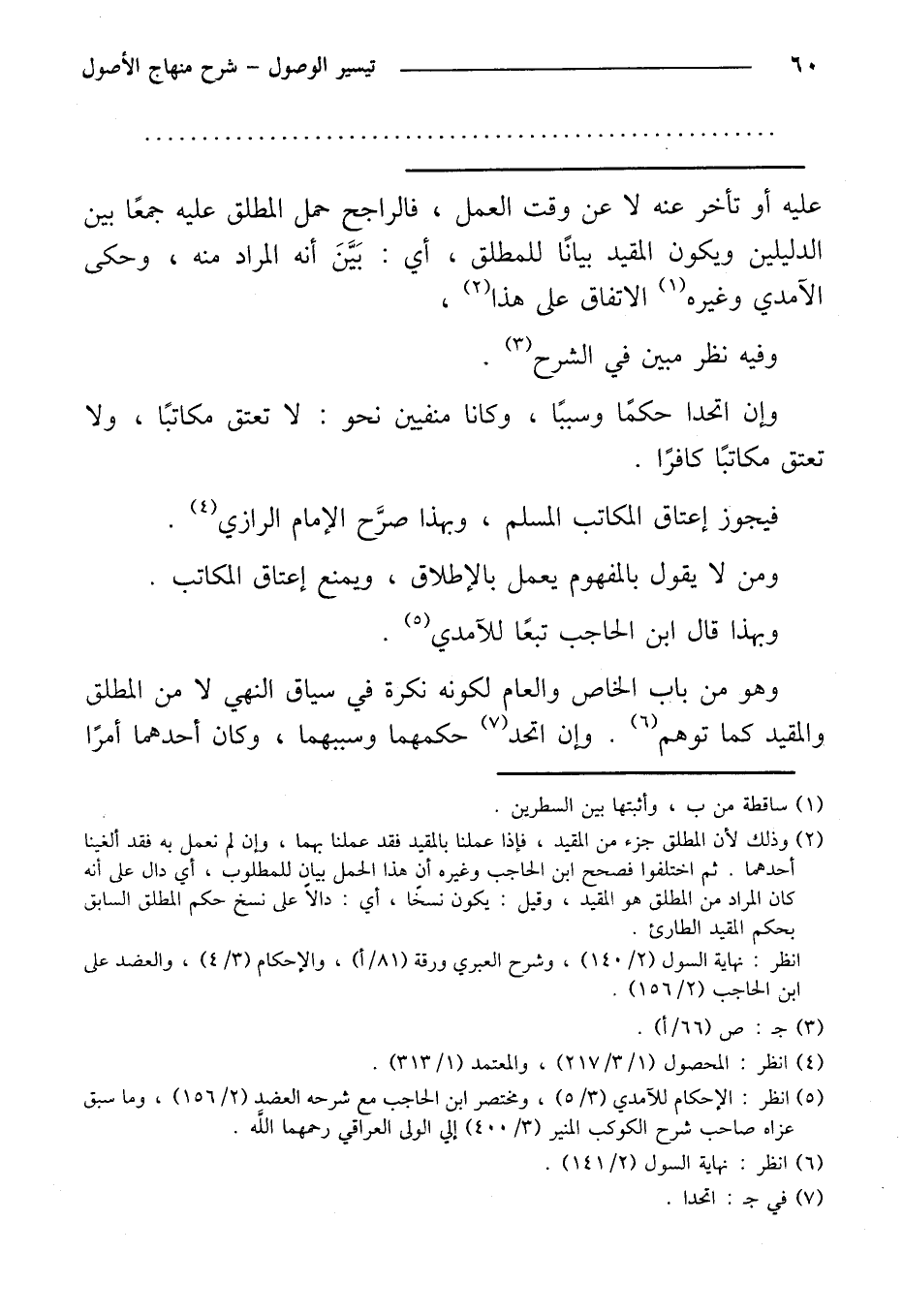 وهو من باب الخاص والعام لكونه نكرة في سياق النهي لا من المطلق والمقيد كما توهم. وإن اتحد حكمهما وسببهما، وكان أحدهما أمرًا