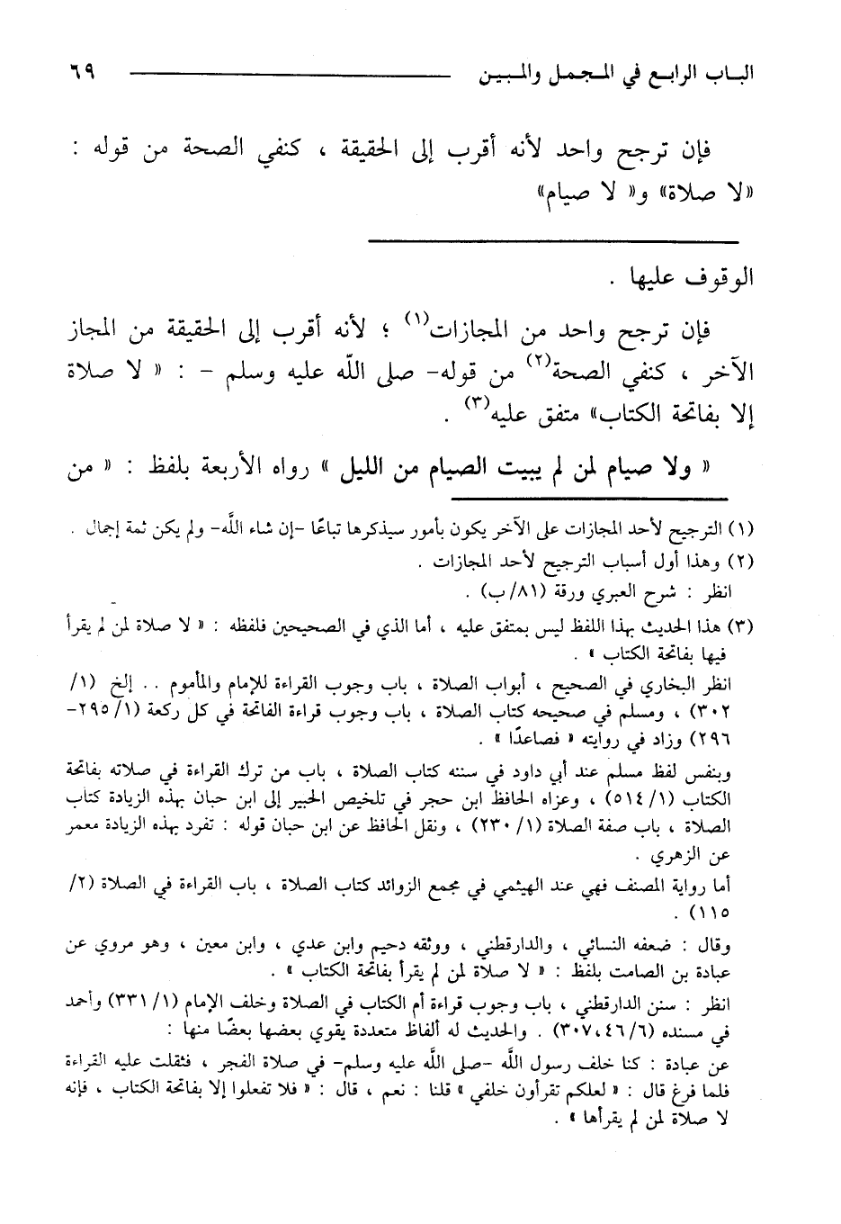 فإن ترجح واحد من المجازات؛ لأنه أقرب إلى الحقيقة من المجاز الآخر، كنفي الصحة من قوله -صلى الله عليه وسلم -: «لا صلاة إلا بفاتحة الكتاب» متفق عليه.