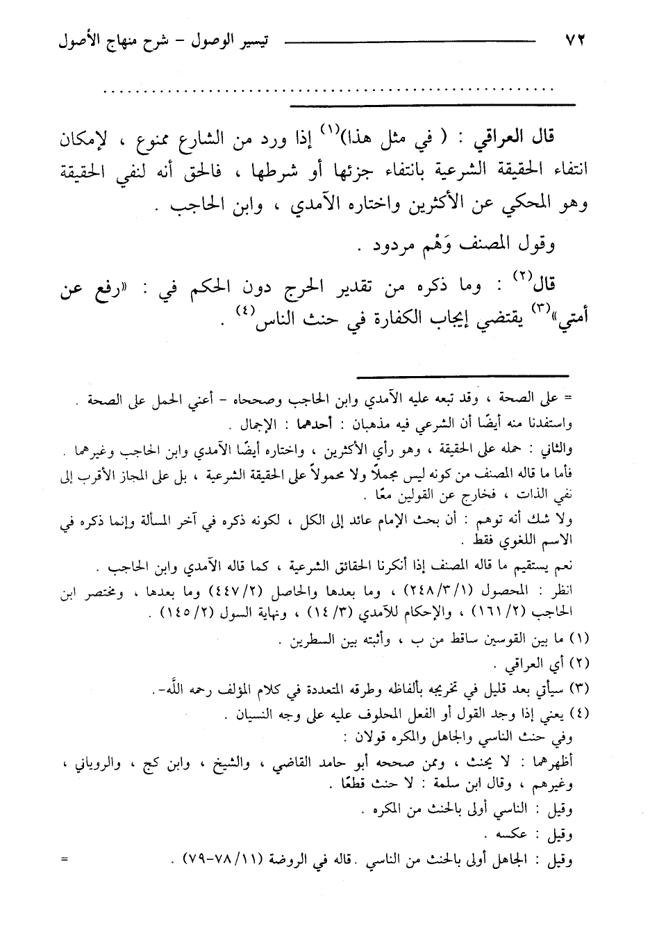 قال العراقي: (في مثل هذا) إذا ورد من الشارع ممنوع، لإمكان انتفاء الحقيقة الشرعية بانتفاء جزئها أو شرطها، فالحق أنه لنفي الحقيقة وهو المحكي عن الأكثرين واختاره الآمدي، وابن الحاجب.