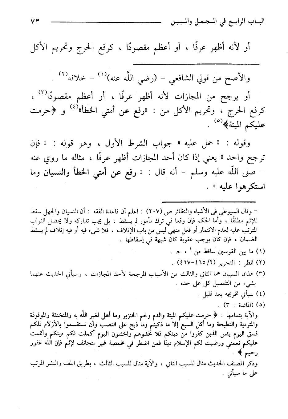 أو يرجح من المجازات لأنه أظهر عرفًا، أو أعظم مقصودًا، كرفع الحرج، وتحريم الأكل من: «رفع عن أمتي الخطأ» و {حرمت عليكم الميتة}.