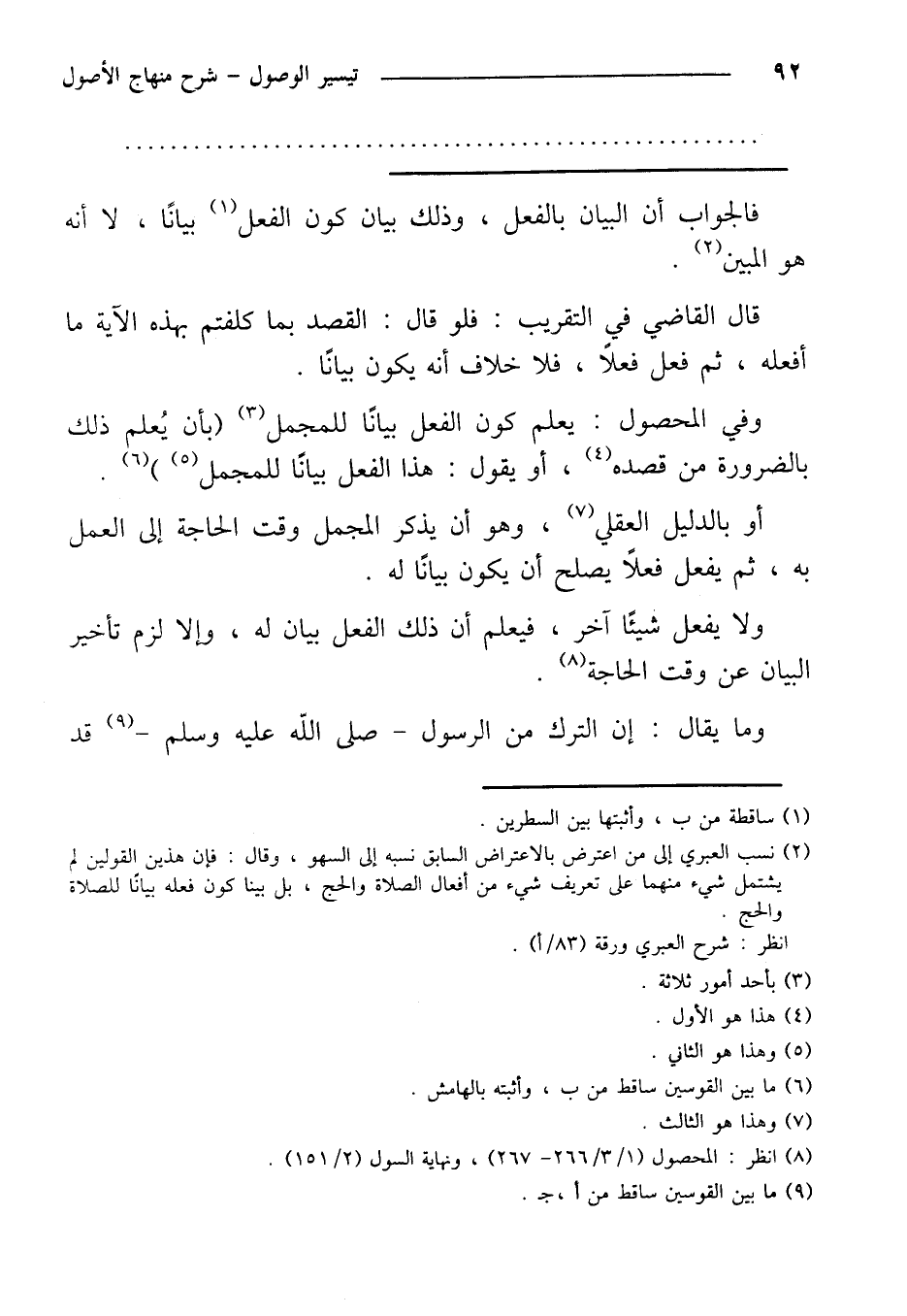 وفي المحصول: يعلم كون الفعل بيانًا للمجمل (بأن يعلم ذلك بالضرورة من قصده، أو يقول: هذا الفعل بيانًا للمجمل).