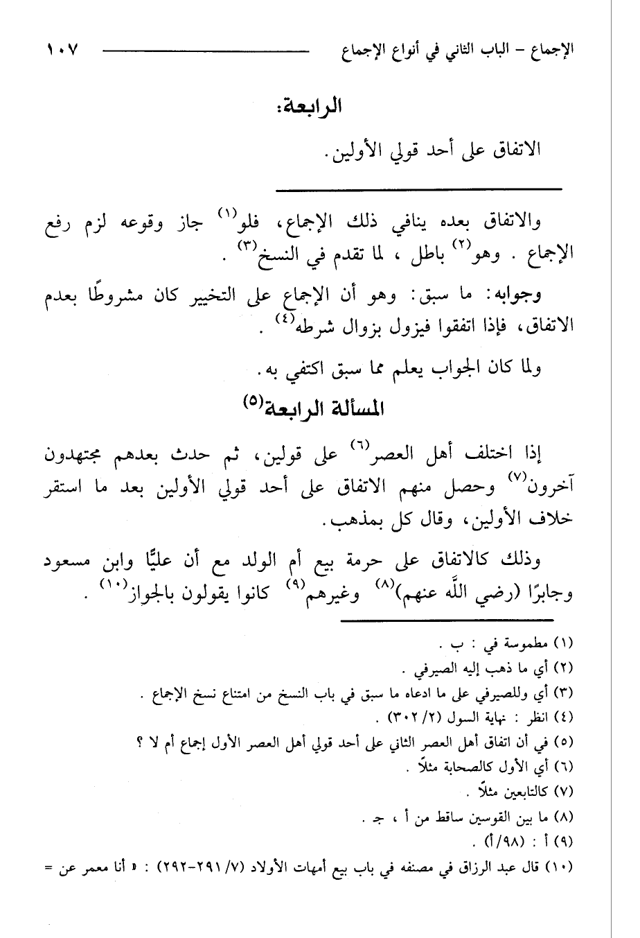 وذلك كالاتفاق على حرمة بيع أم الولد مع أن عليًا وابن مسعود وجابرًا (رضي الله عنهم) وغيرهم كانوا يقولون بالجواز.