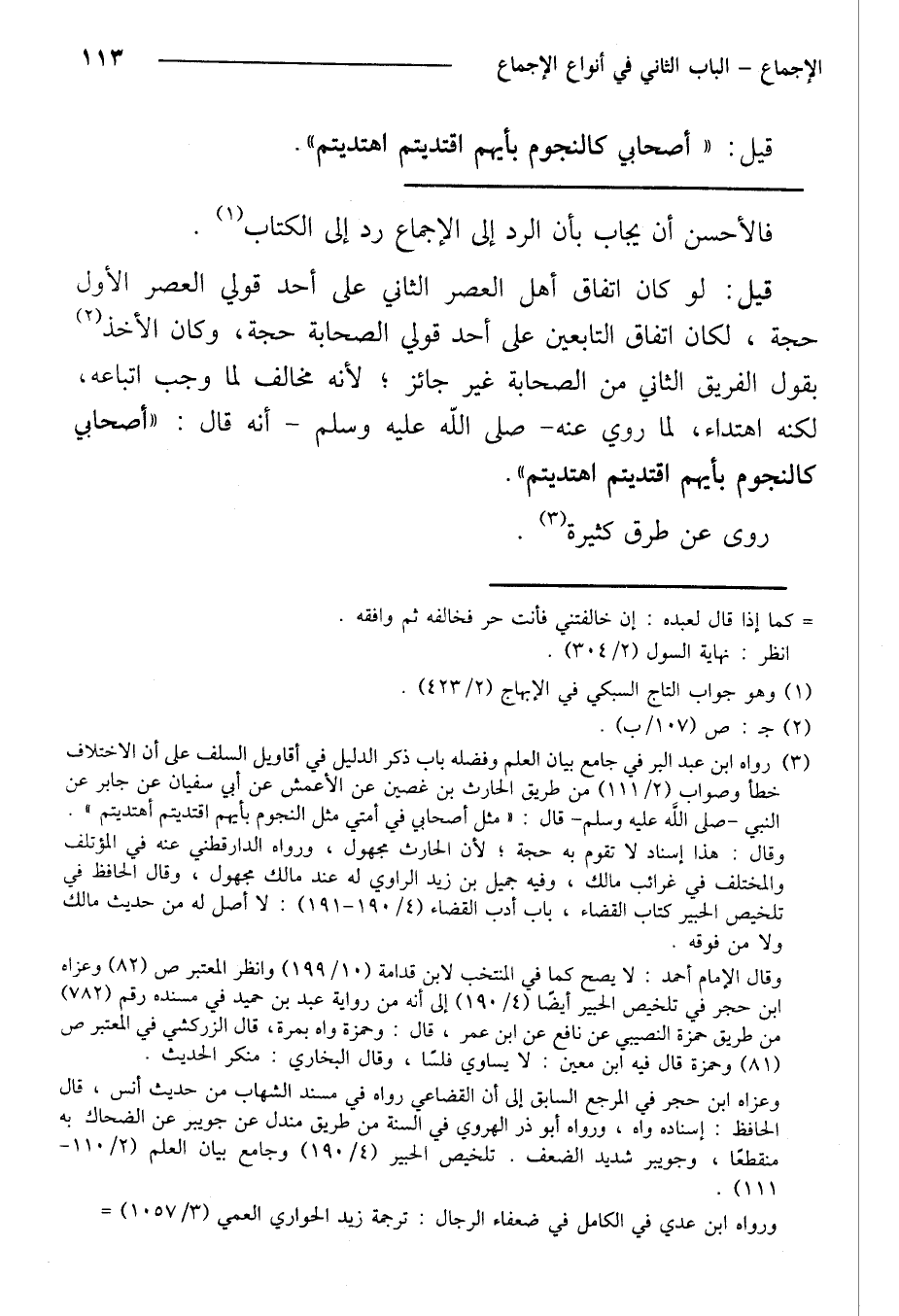 قيل: لو كان اتفاق أهل العصر الثاني على أحد قولي العصر الأول حجة، لكان اتفاق التابعين على أحد قولي الصحابة حجة، وكان الأخذ بقول الفريق الثاني من الصحابة غير جائز؛ لأنه مخالف لما وجب إتباعه، لكنه اهتداء، لما روي عنه -صلى الله عليه وسلم -أنه قال: «أصحابي كالنجوم بأيهم اقتديتم اهتديتم».