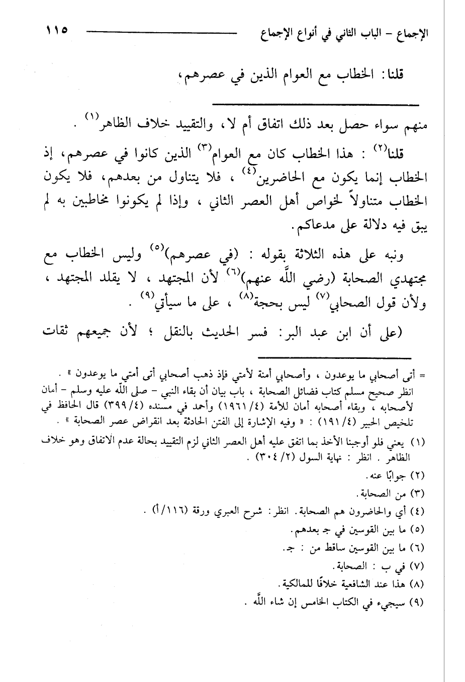 قلنا: هذا الخطاب كان مع العوام الذين كانوا في عصرهم، إذ الخطاب إنما يكون مع الحاضرين، فلا يتناول من بعدهم، فلا يكون الخطاب متناولًا لخواص أهل العصر الثاني، وإذا لم يكونوا مخاطبين به لم يبق فيه دلالة على مدعاكم.