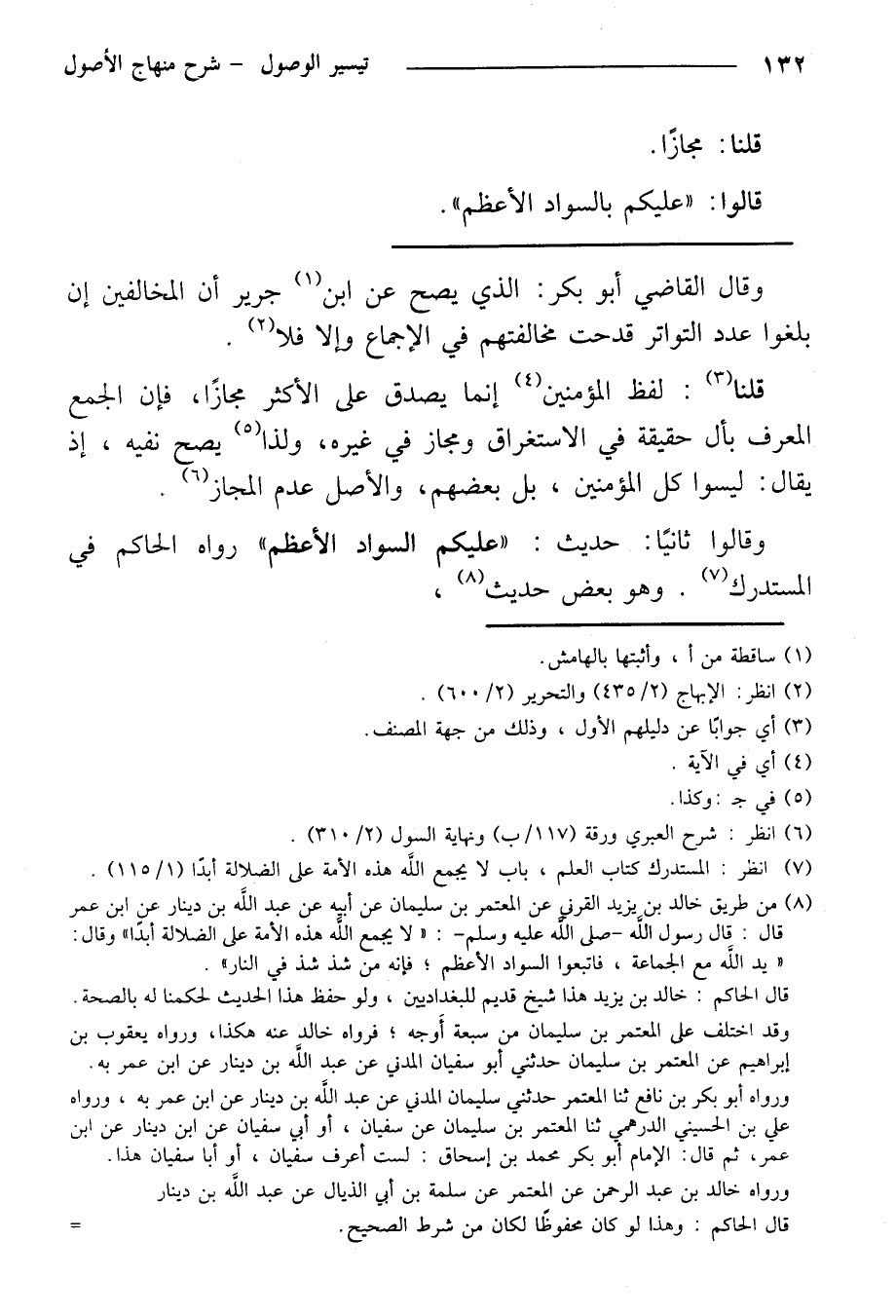 وقالوا ثانيًا: حديث: «عليكم السواد الأعظم» رواه الحاكم في المستدرك. وهو بعض حديث،