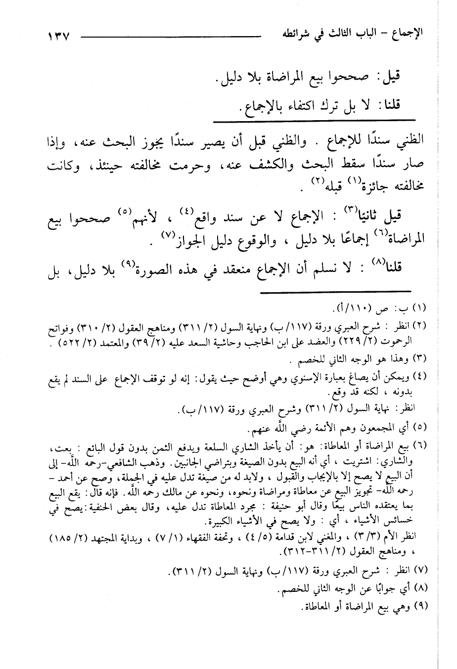 قيل ثانيًا: الإجماع لا عن سند واقع، لأنهم صححوا بيع المراضاة إجماعًا بلا دليل، والوقوع دليل الجواز.