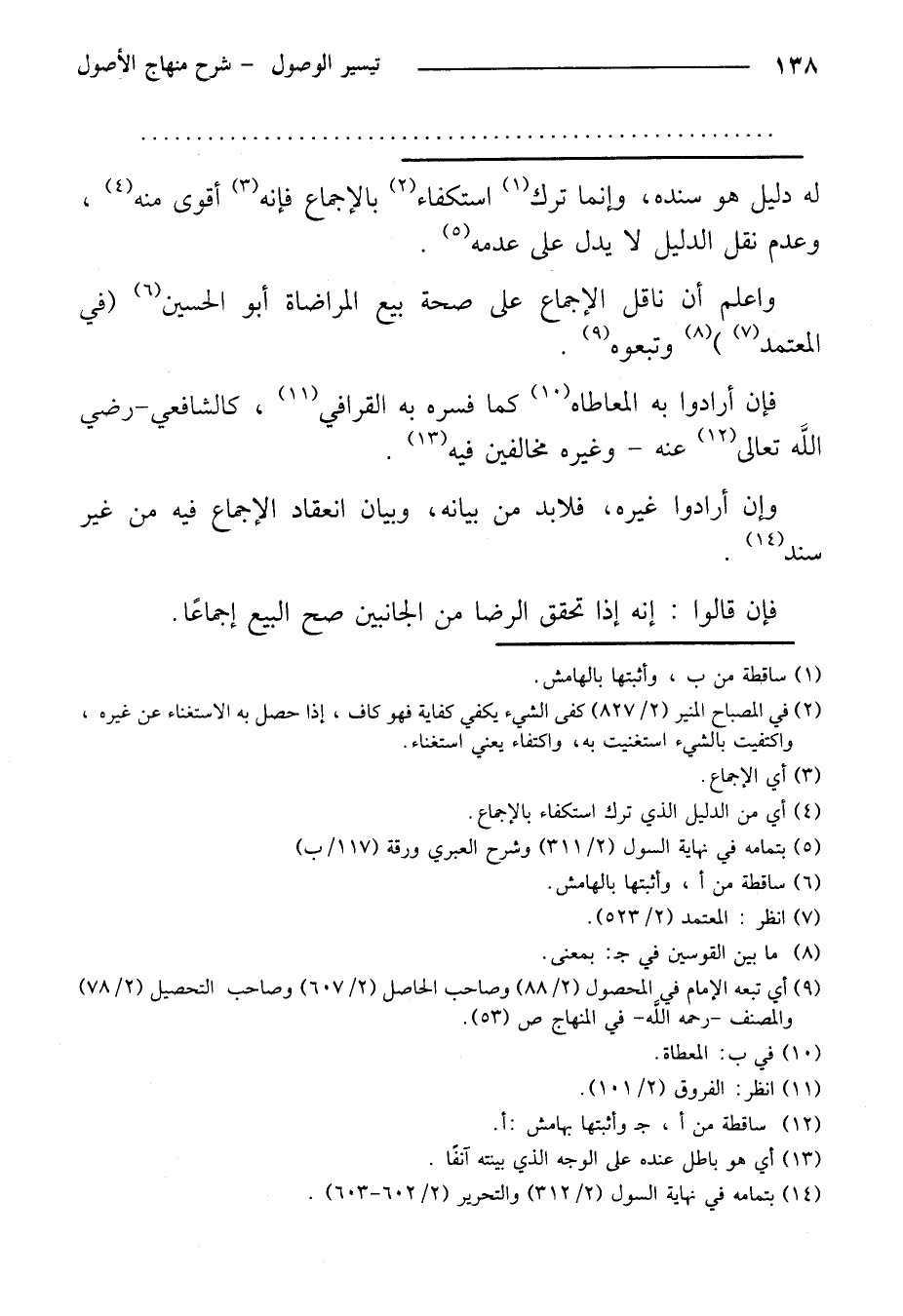 واعلم أن ناقل الإجماع على صحة بيع المراضاة أبو الحسين (في المعتمد) وتبعوه.