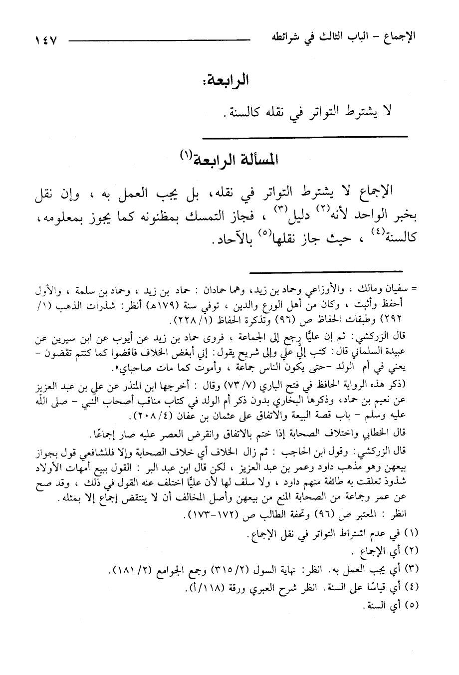الإجماع لا يشترط التواتر في نقله، بل يجب العمل به، وإن نقل بخبر الواحد لأنه دليل، فجاز التمسك بمظنونه كما يجوز بمعلومه، كالسنة، حيث جاز نقلها بالآحاد.