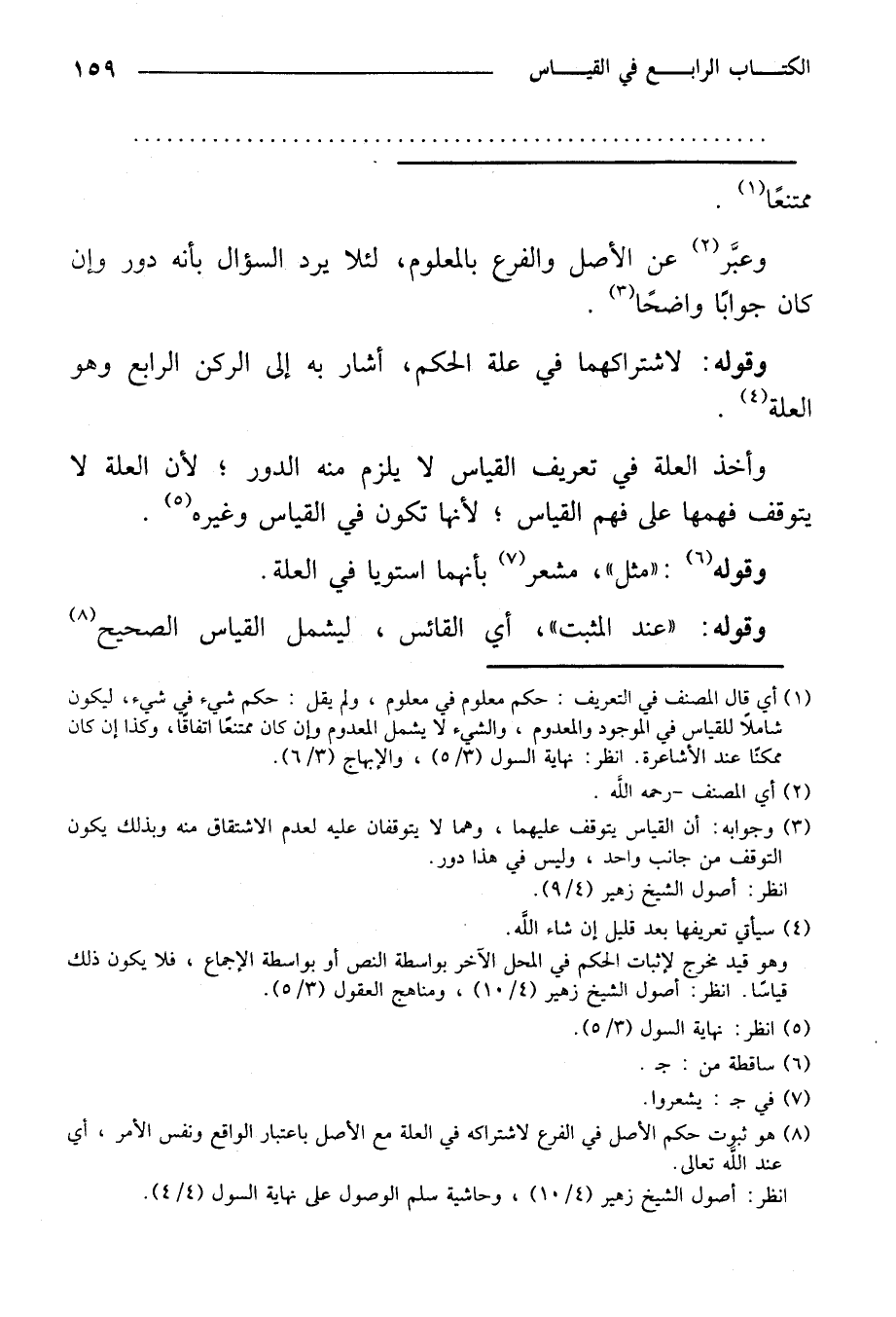 وأخذ العلة في تعريف القياس لا يلزم منه الدور؛ لأن العلة لا يتوقف فهمها على فهم القياس، لأنها تكون في القياس وغيره.