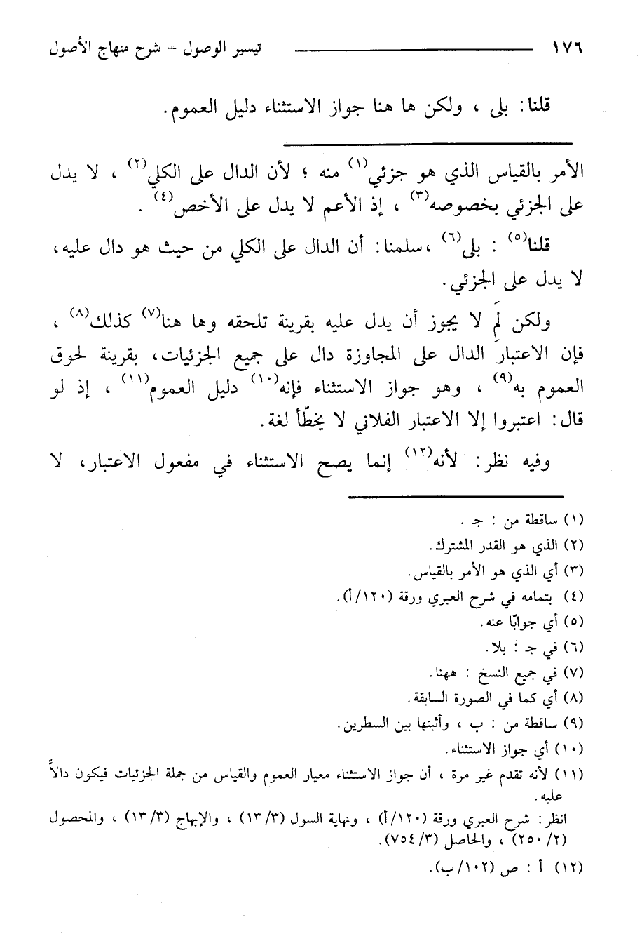 ولكن لم لا يجوز أن يدل عليه بقرينة تلحقه وها هنا كذلك، فإن الاعتبار الدال على المجاوزة دال على جميع الجزئيات، بقرينة لحوق العموم به، وهو جواز الاستثناء فإنه دليل العموم، إذ لو قال: اعتبروا إلا الاعتبار الفلاني لا يخطأ لغة.