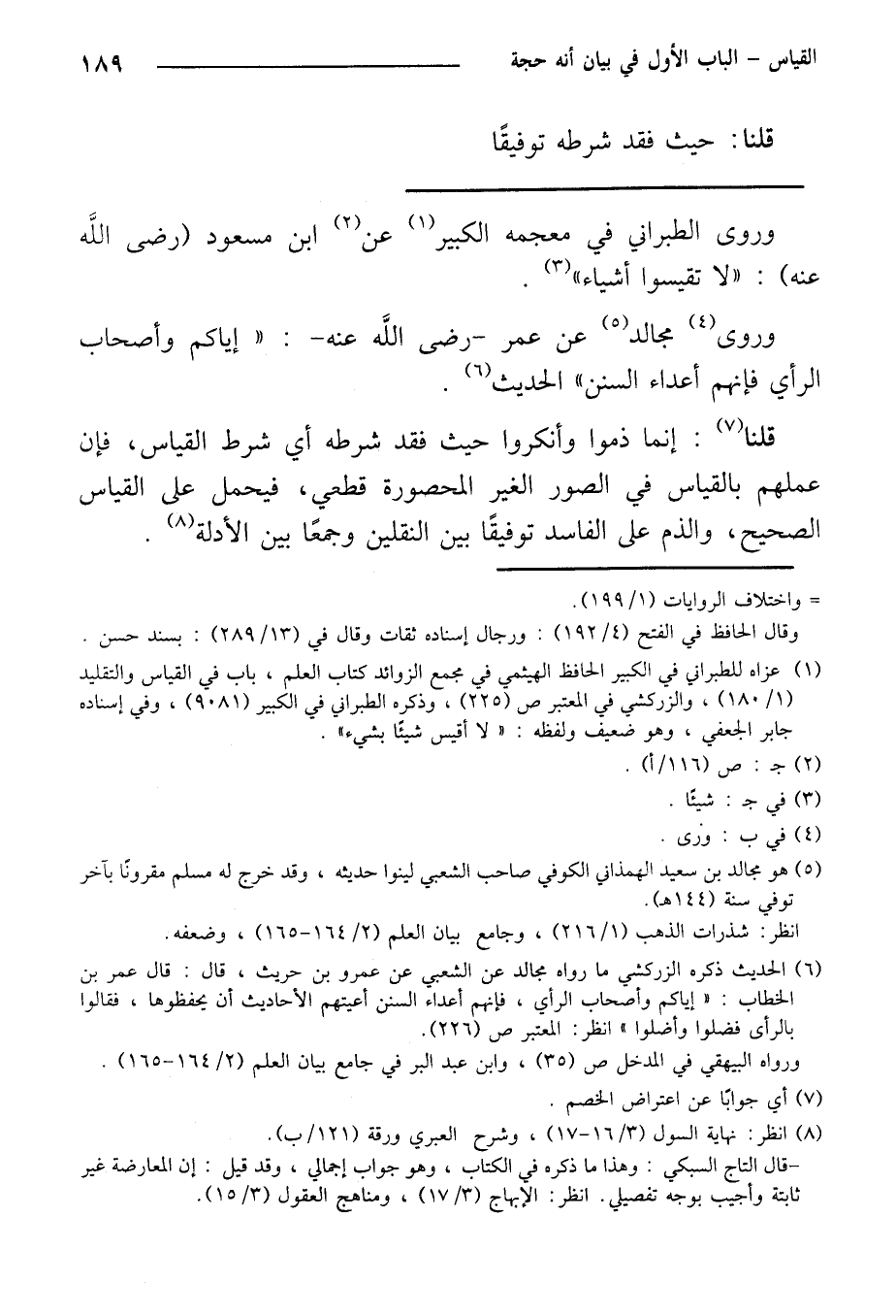 قلنا: إنما ذموا وأنكروا حيث فقد شرطه أي شرط القياس، فإن عملهم بالقياس في الصور الغير المحصورة قطعي، فيحمل على القياس الصحيح، والذم على الفاسد توفيقًا بين النقلين وجمعًا بين الأدلة.