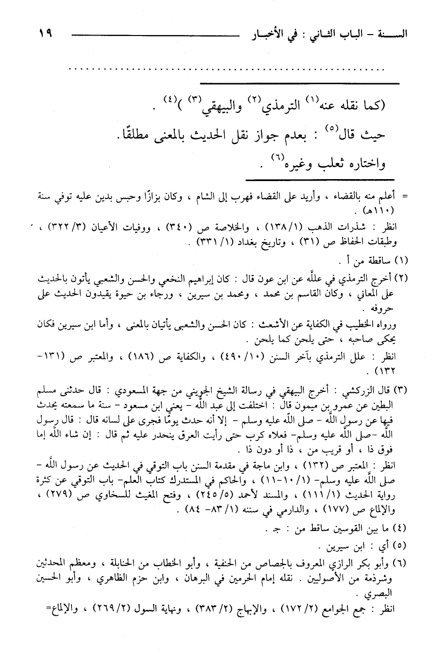 حيث قال: بعدم جواز نقل الحديث بالمعنى مطلقًا.