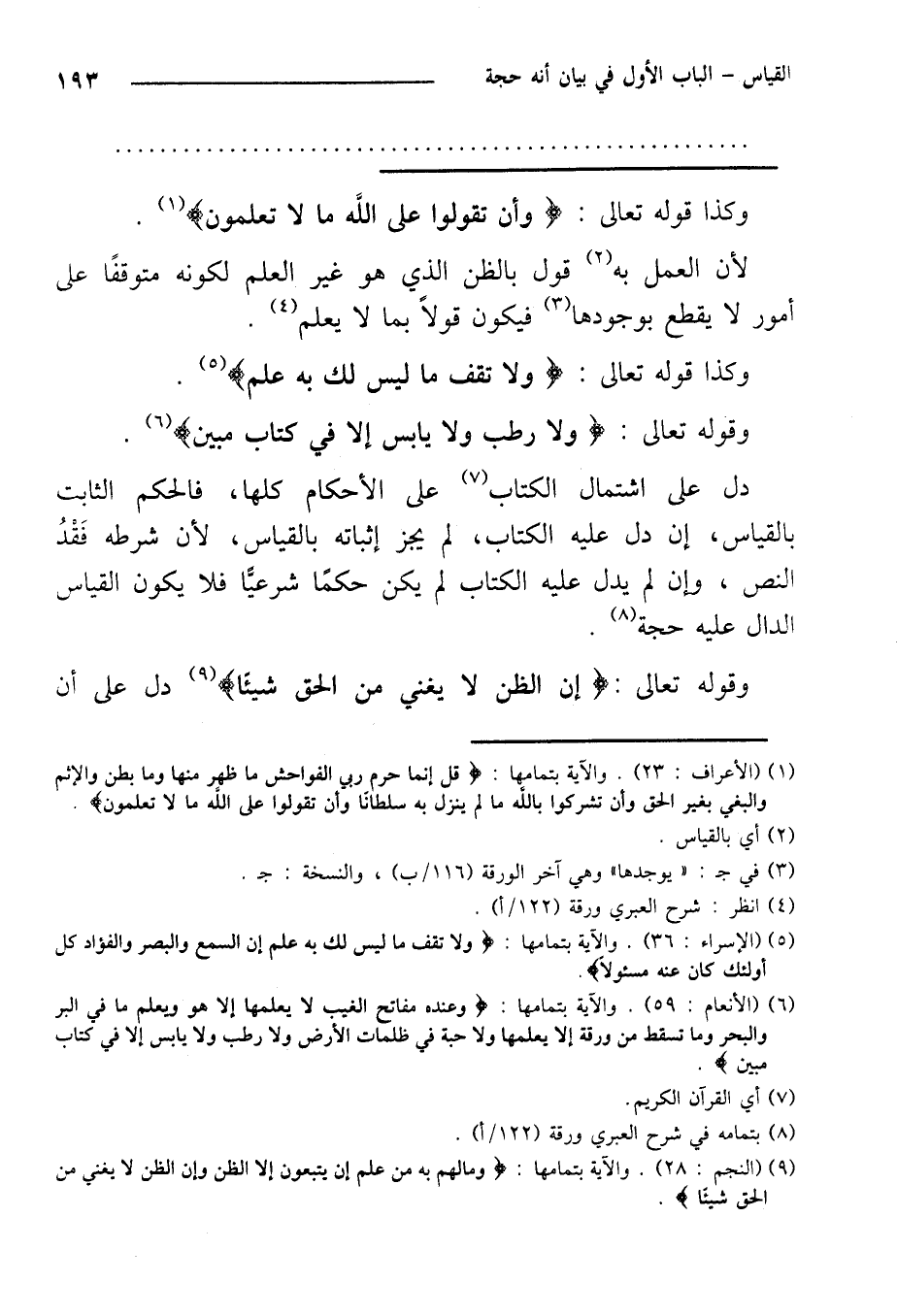 دل على اشتمال الكتاب على الأحكام كلها، فالحكم الثابت بالقياس، إن دل عليه الكتاب، لم يجز إثباته بالقياس، لأن شرطه فقد النص، وإن لم يدل عليه الكتاب لم يكن حكمًا شرعيًا فلا يكون القياس الدال عليه حجة.